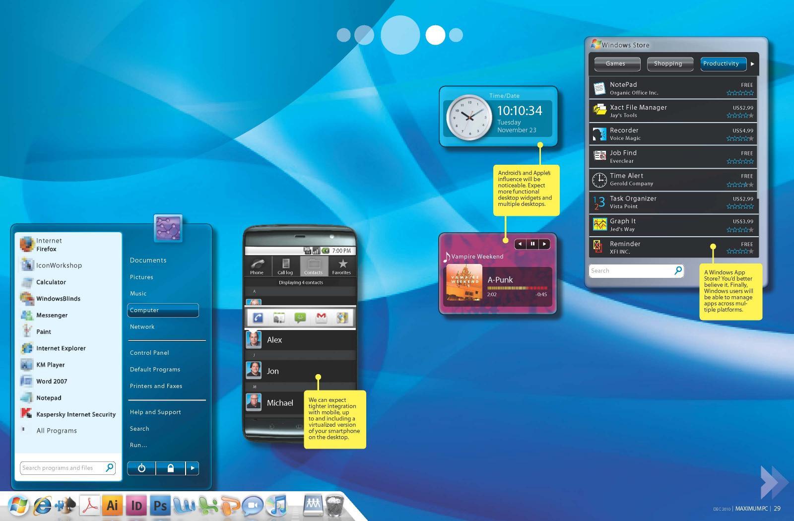 Então, o que é previsto para o Windows 9? Primeiro, o Metro 2.0: um dos focos será “amadurecer e consertar” o design moderno do sistema. Mas como? Ainda não se sabe ao certo, mas acredita-se que os apps Metro poderão se sobrepor na tela, flutuando em janelas separadas, assim como programas tradicionais.