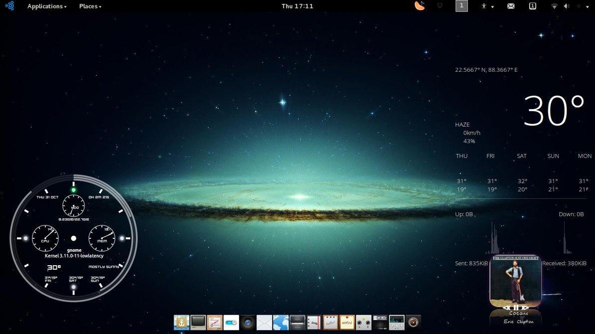 Conky são os widgets ou gadgets para a Área de trabalho com o objetivo de mostrar dados do sistema, hora e etc.