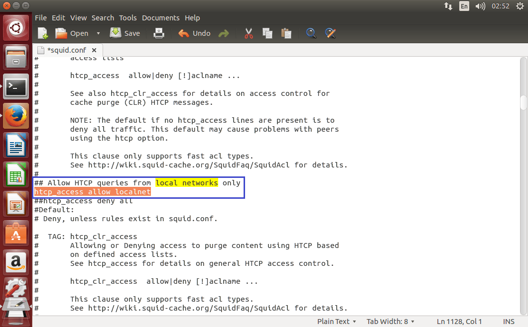 O arquivo “squid.conf” tem muitas opções padrão listadas, e isso é útil para que através deste arquivo consultemos mais opções de configurações de regras do Squid.