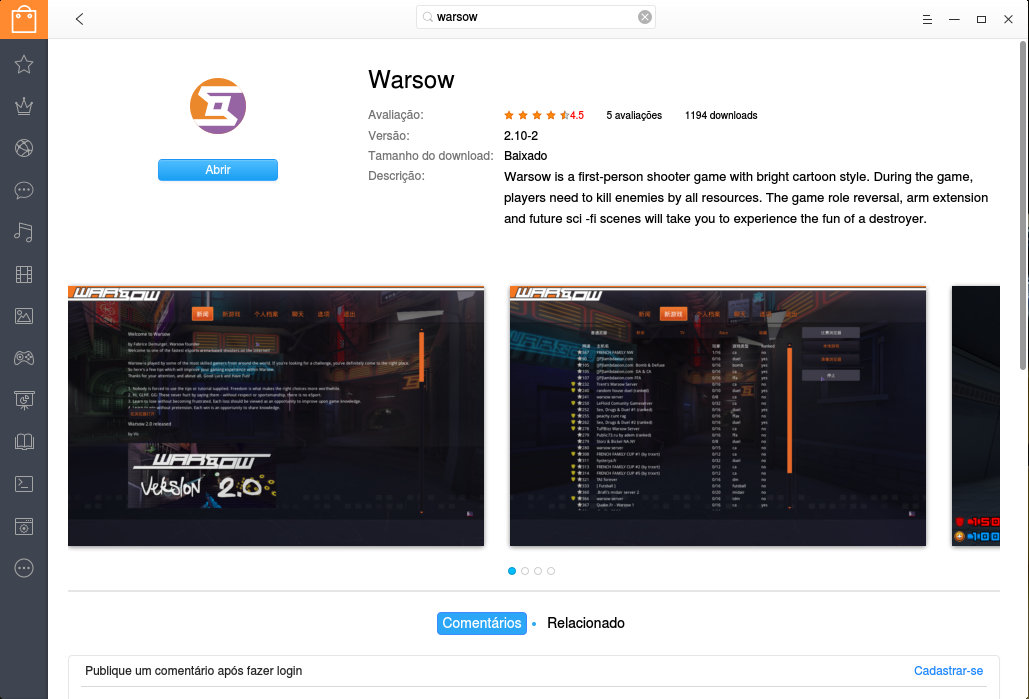 Se você não encontrar o Warsow e o Xonotic, ou não tenha um repositório disponível para a sua distribuição Linux, será necessário baixar e instalar manualmente. Para isso, basta acessar o site através dos links abaixo e seguir as minhas instruções de instalação.