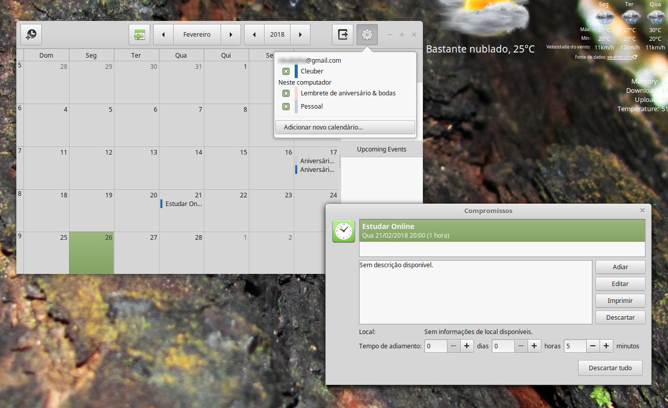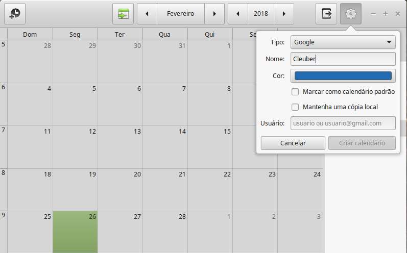 Minha solução foi instalar o Maya-Calendar (do Elementary OS e funciona supimpa!!!”). E depois instalar os webapps do Chrome. A agenda do Google, Gmail, Facebook e etc.
