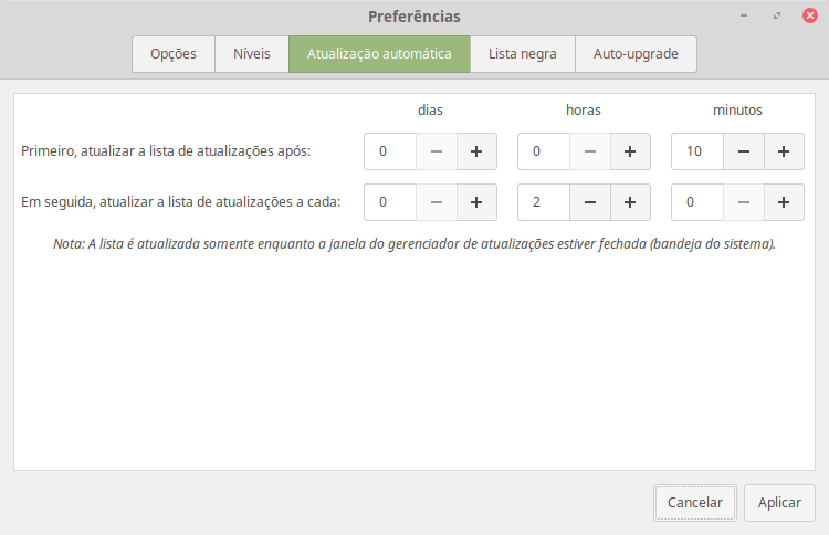 Você também pode ativar atualizações automáticas facilmente agora. Desta forma, o seu sistema Linux Mint será atualizado regularmente sem qualquer intervenção manual.