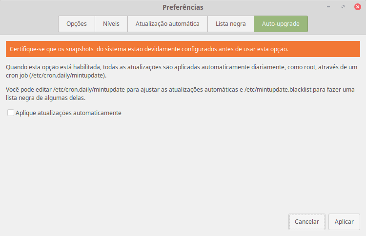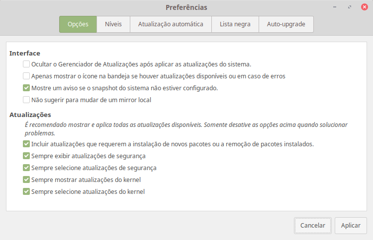 - Mint Updates – App de Atualizações melhorado com diversas novas opções e funcionalidades e integrado aos backups do TimeShift (Item 5.7 e 5.8)