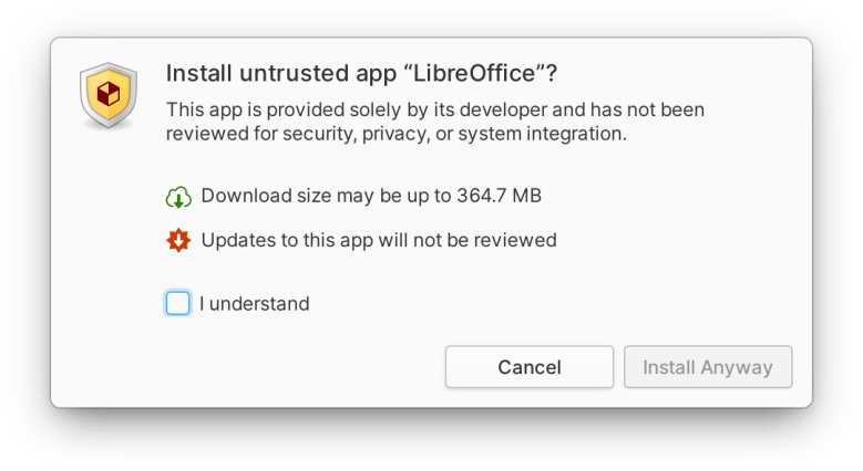 Essas proteções estão em vigor para aplicativos instalados a partir do AppCenter, mas também se aplicam a todos os aplicativos instalados por meio do utilitário Sideload integrado – incluindo todos os aplicativos Flatpak de terceiros de fontes externas como Flathub ou o próprio site do desenvolvedor. Com essas proteções integradas e o OS 6 elementar priorizando o Flatpak, é mais fácil e seguro do que nunca obter e usar os aplicativos de que você precisa.